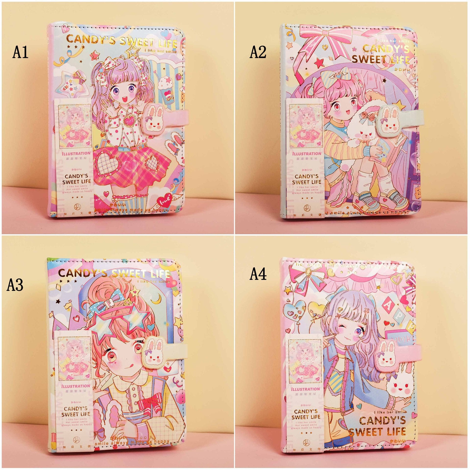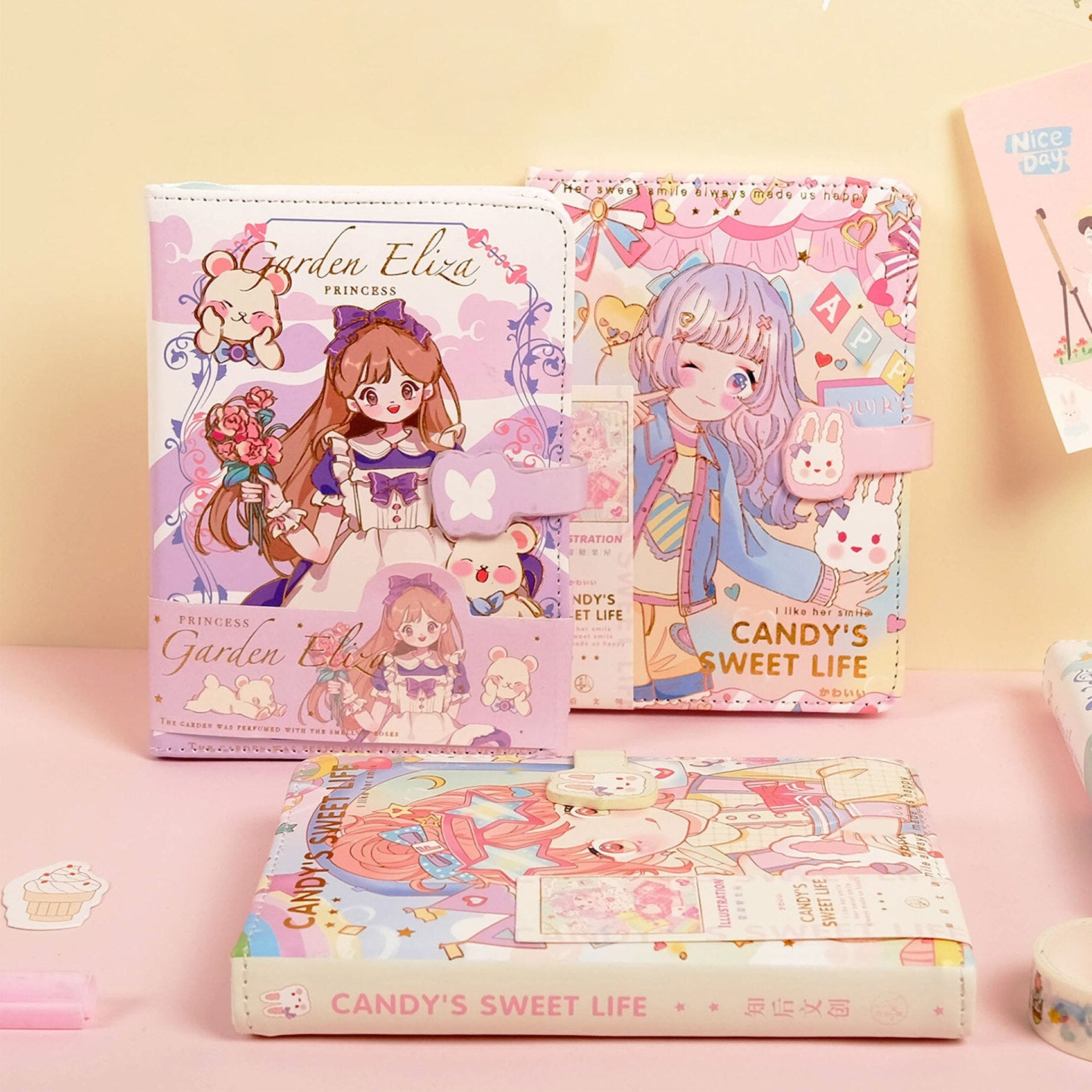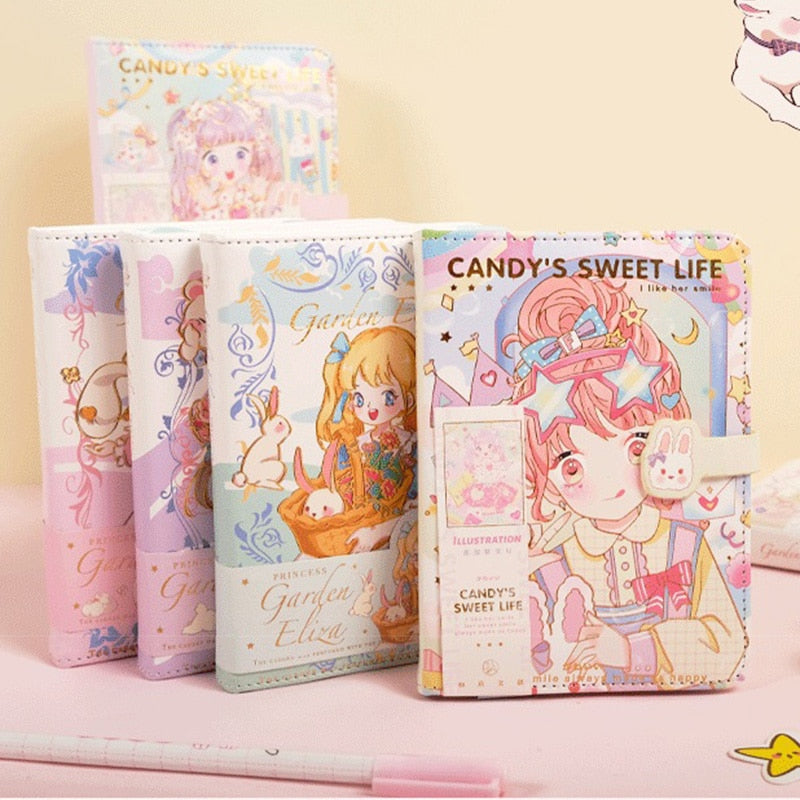 Cute Cartoon Soft Leather Magnetic Button Diary
