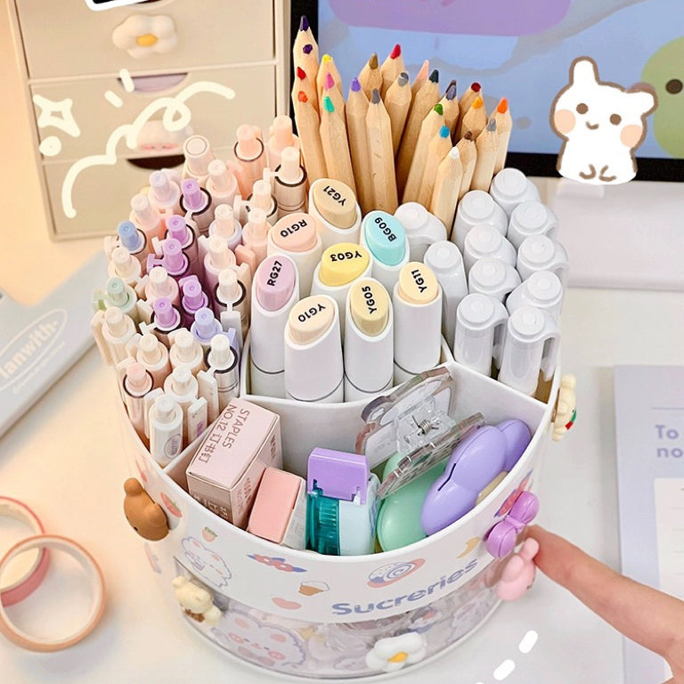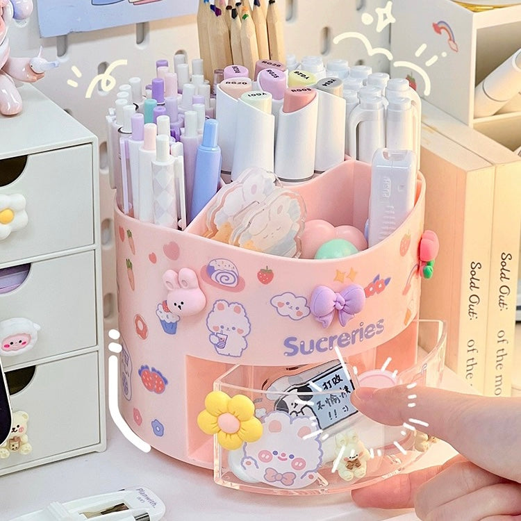 Cute Rotating Pen Holder with Storage Box