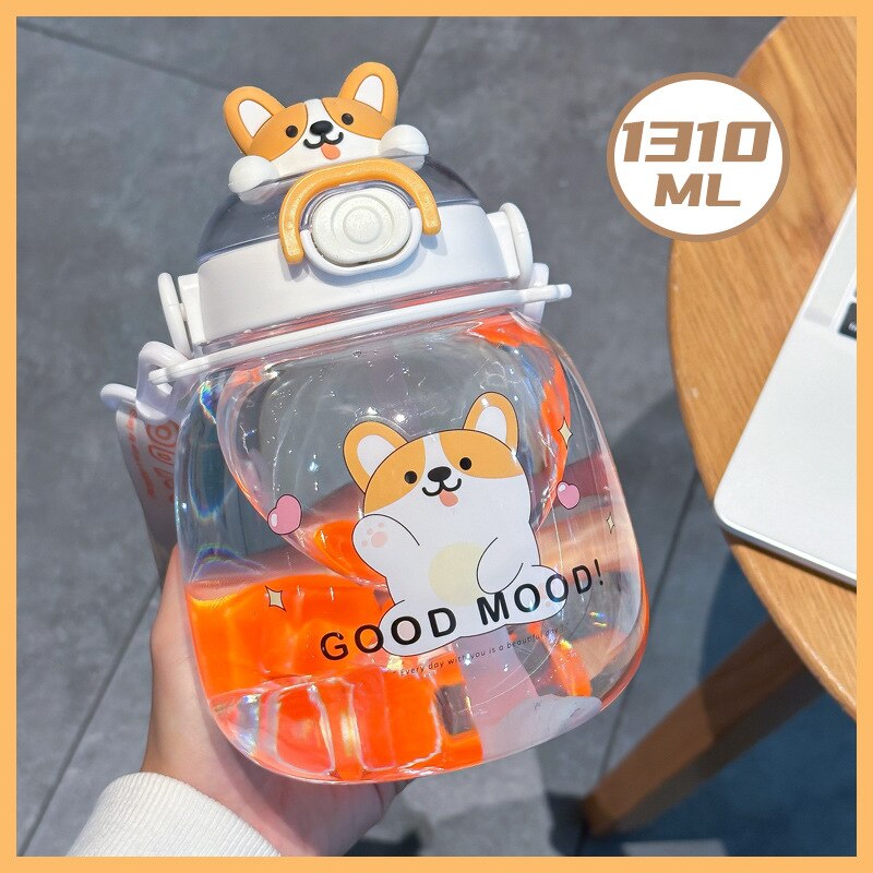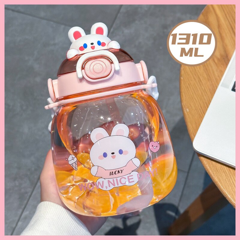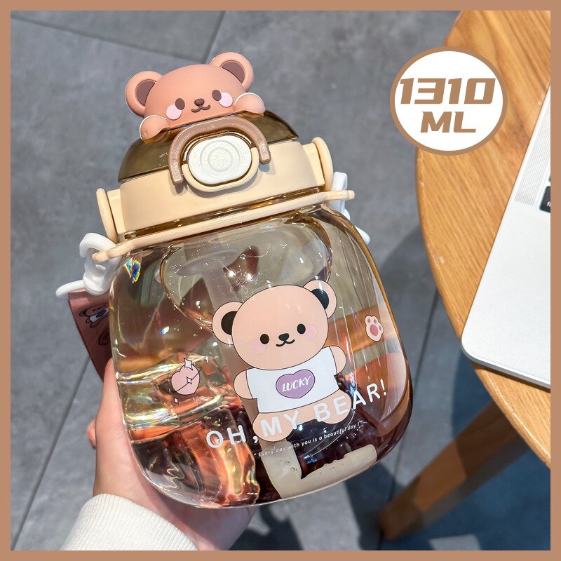 Kawaii Bear Water Bottle Large Capacity with Straw 1300ML