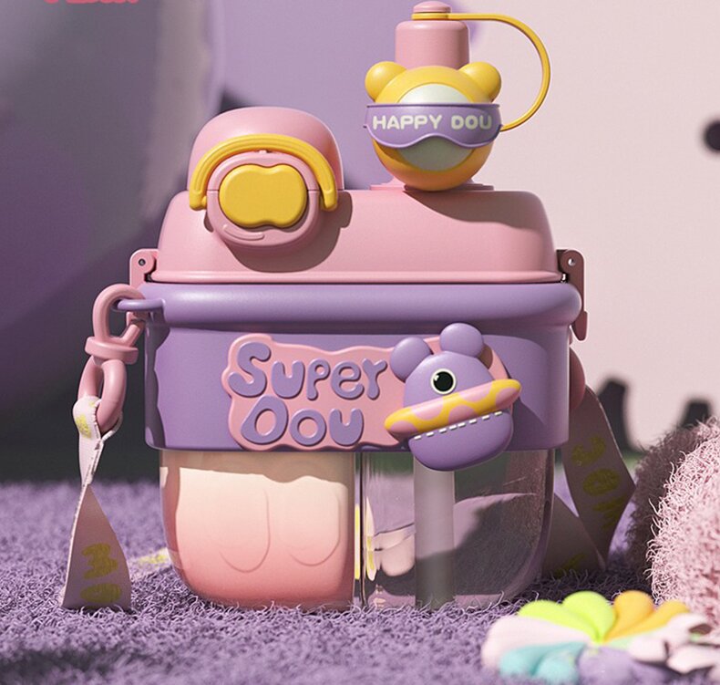 Kawaii Double Straw Water Bottle 500ML