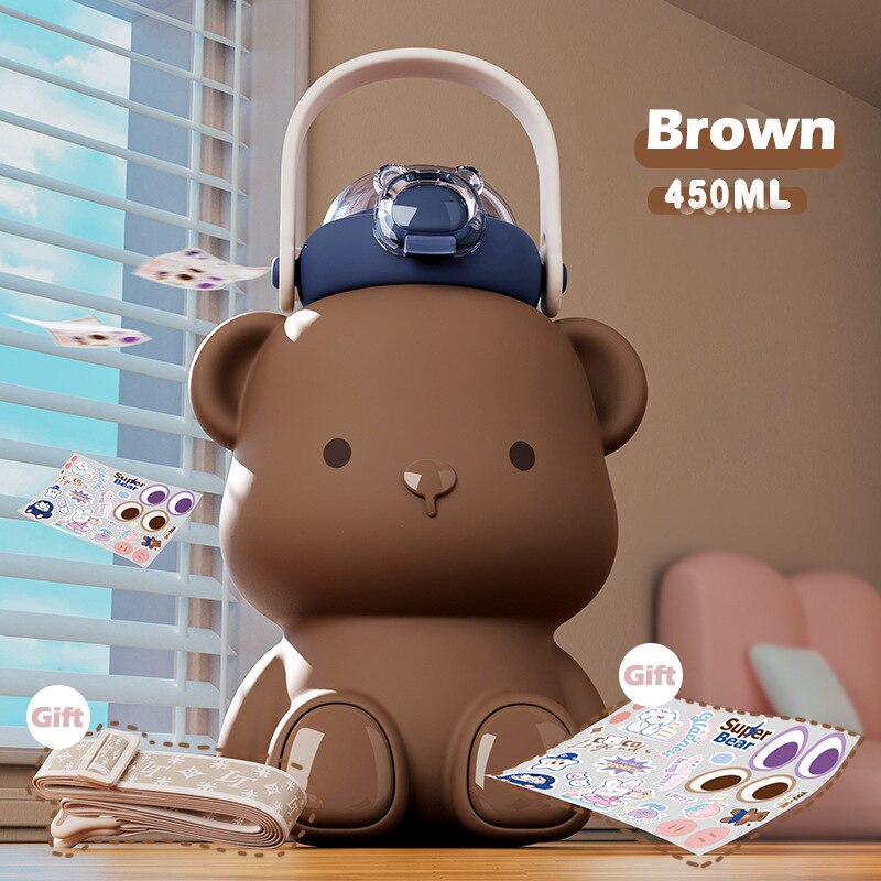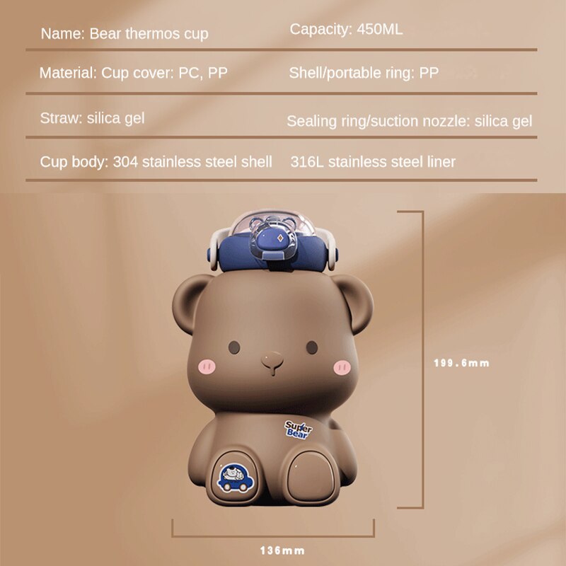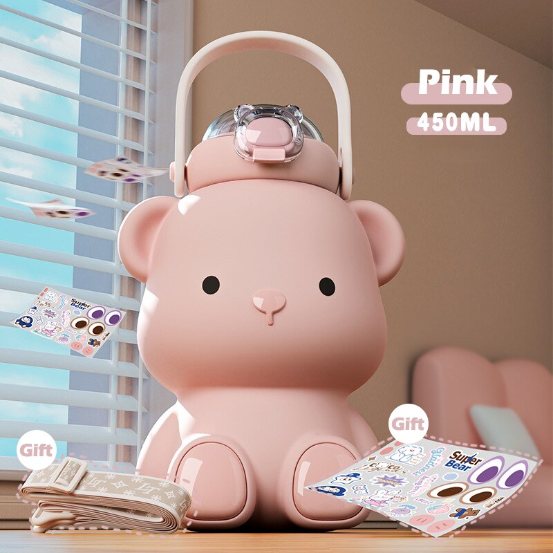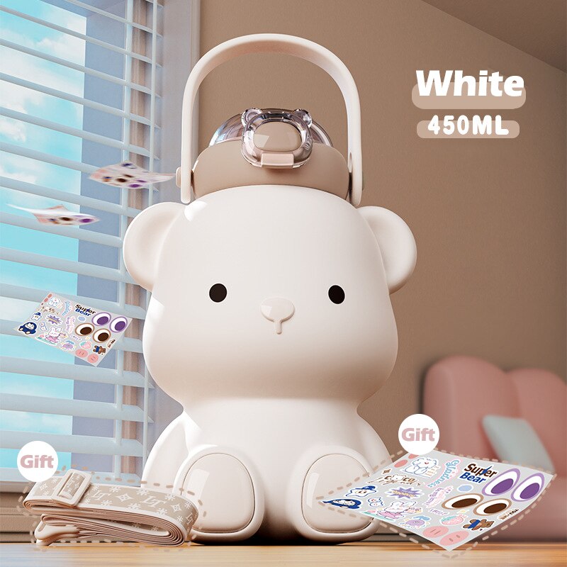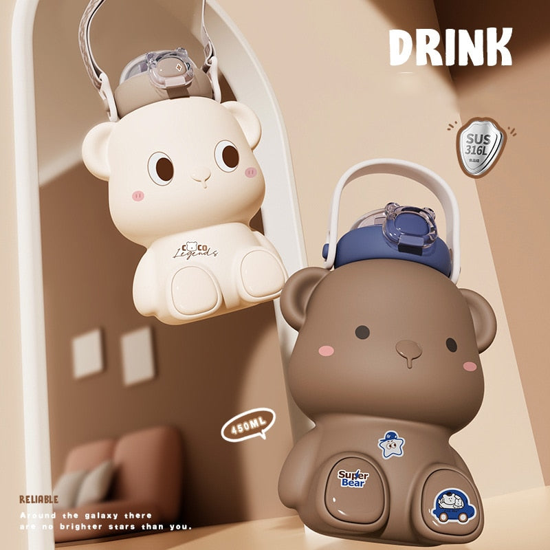 Portable Kawaii Bear Thermos Bottle Stainless Steel with Straw 450ml