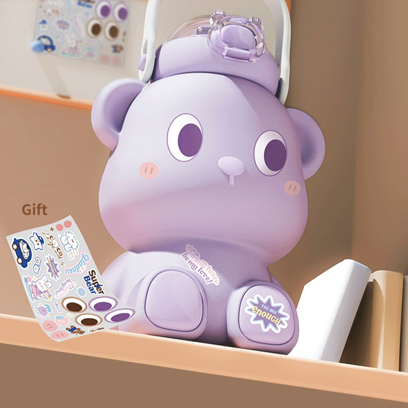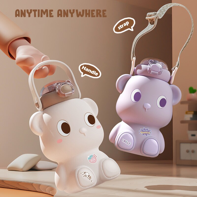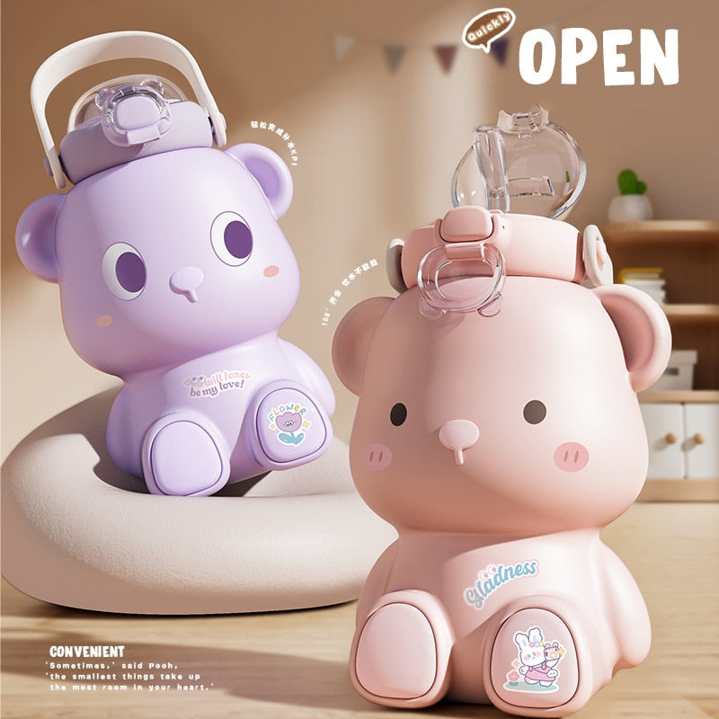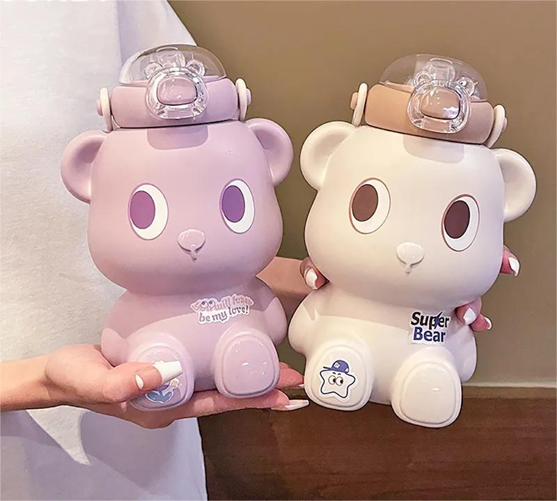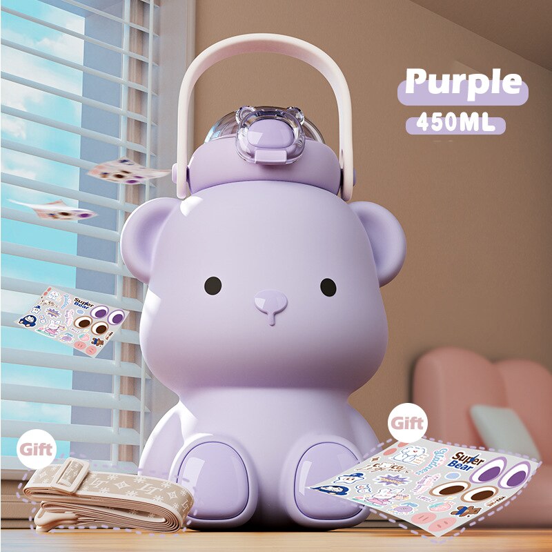 Portable Kawaii Bear Thermos Bottle Stainless Steel with Straw 450ml